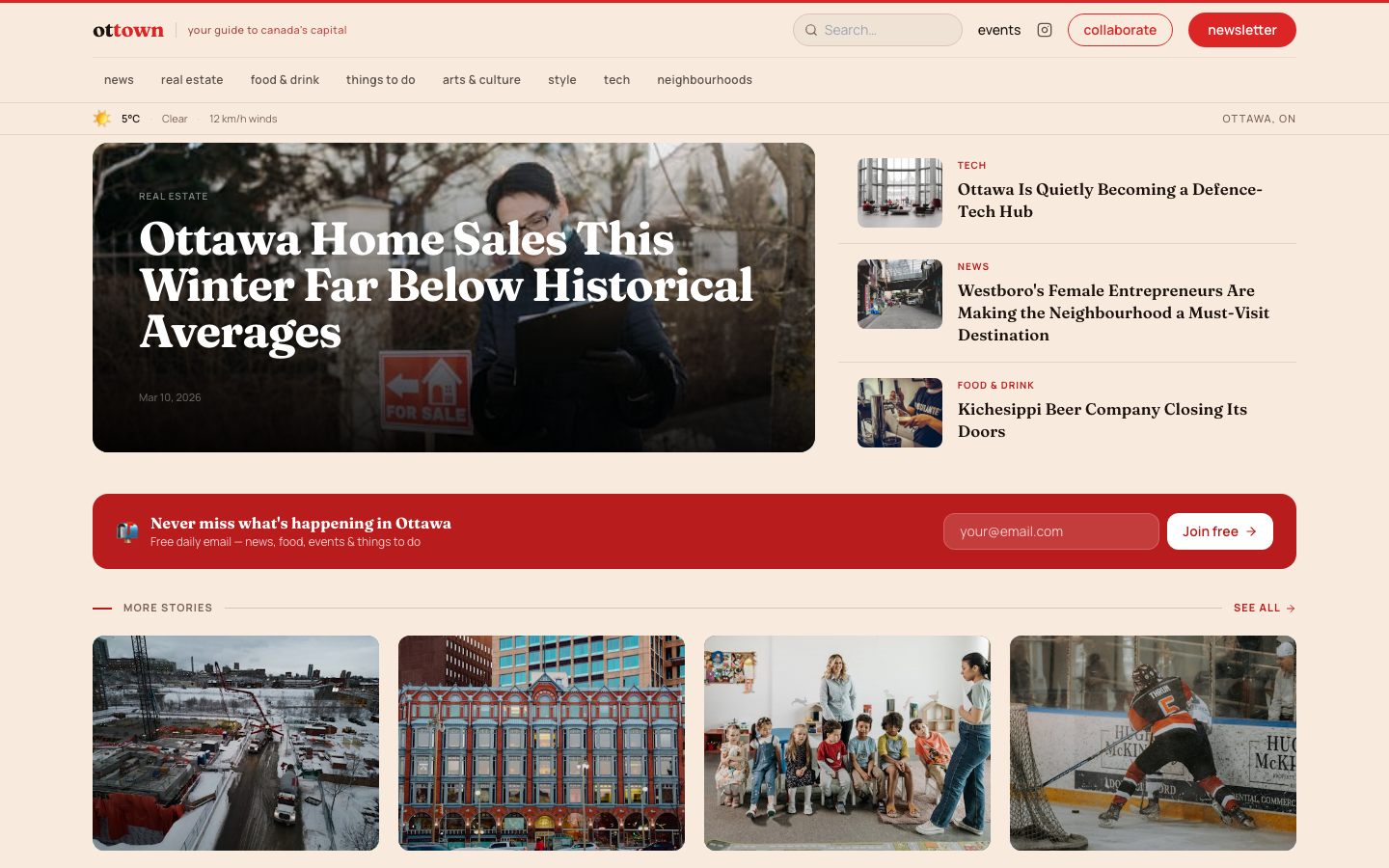 a fully automated local city guide for Ottawa — publishing daily news, food, real estate, arts, and events content powered by AI. articles are generated from RSS feeds, Instagram, and Reddit, then auto-published with SEO-optimized copy and cover images.